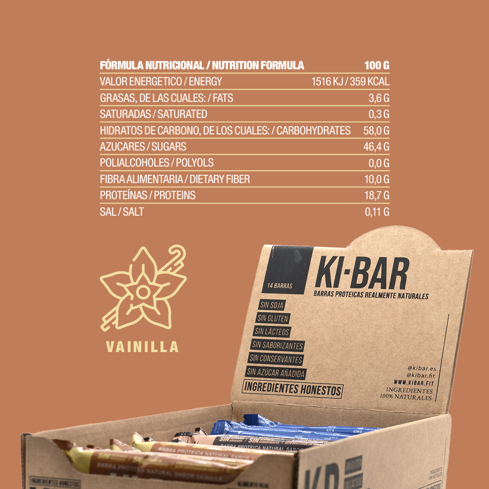 Caja expositor de 14 unidades. Sabor vainilla. Ingredientes 100% naturales