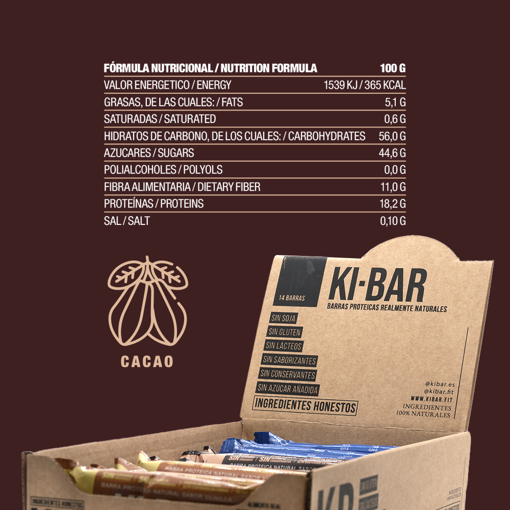 Porque el azúcar refinado no da ningún beneficio a la salud sino todo lo contrario, y aún más con el estilo de vida moderno donde hay un exceso de comida y sedentarismo, nuestras KI-BAR no contienen azúcar agregada. La mezcla de grasa y azúcar genera adicción en las personas y las grandes industrias lo saben, por ello crean productos a los que nos volvemos adictos y consumimos más y más. Nosotros endulzamos las barras con los propios ingredientes de la misma, generando un sabor suave y natural. Los dátiles son nuestro gran aliado aportando sabor, energía y nutrición al organismo.